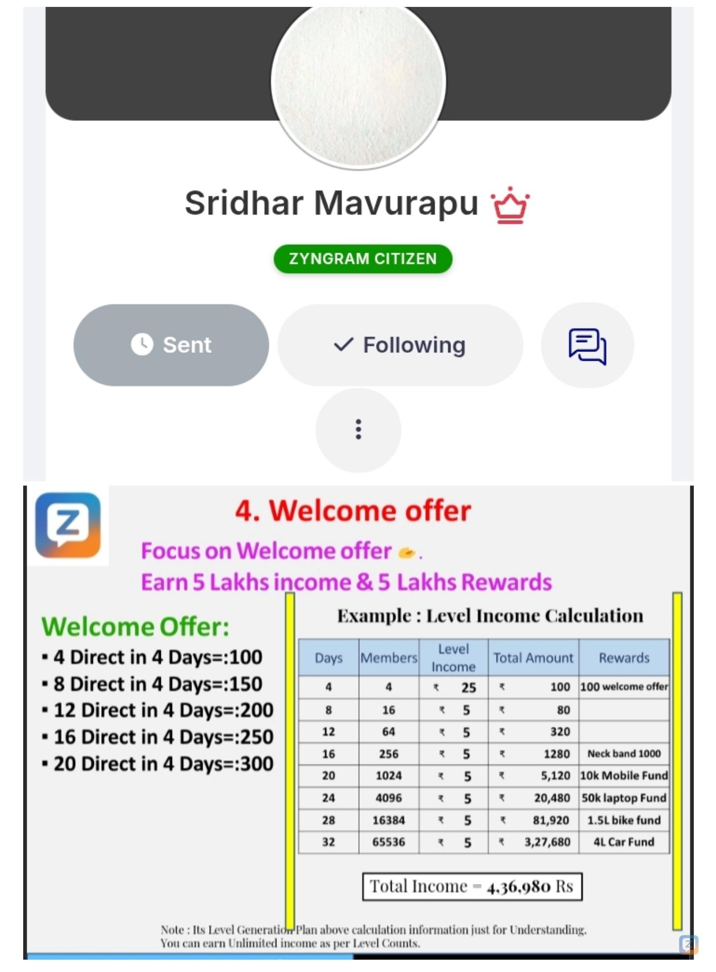 Any doubts call : 7893897212🎊💐💐🎊💐💐🎊💐💐🎊 *Welcome Bonus Credit to our New Achiever Mr. Sridhar Mavurapu . Hearty Congratulations Keep Rocking & Keep working to achieve Royalty Income & Luxurious Rewards. All the best you have a Bright Future in Zyngram 💐* 🎊🎊💐🎊🎊💐🎊🎊 Everyone Focus on Welcome Offer, it's Golden Opportunity ✨️ to Earn 5 Lakhs+ in 32 Days 🥳👌. Follow the Chart. Telugu Full video https://youtu.be/mqJIGeNxYsQ?si=COlSOF4XOLgjBVrq Hindi Full video https://youtu.be/0X9DSEvhSe4?si=g5YYwLllHmjQeds- *Referral Id:-* Any doubts call : 78938972120 Reacties 2 aandelen 128 Views 0 voorbeeld