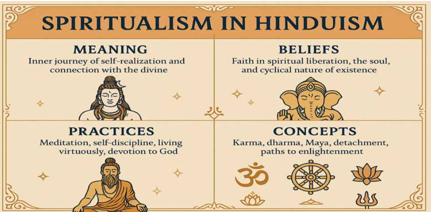 Hinduism is not a single religion but a diverse family of religious traditions that originated in India and are collectively known as Sanatana Dharma or the "eternal duty". It is a "way of life" encompassing a wide spectrum of spiritual views, from polytheism to monotheism, and even atheism, rather than a unified religion with a single founder, prophet, or holy book. Instead, it is a complex system of philosophies and practices rooted in the concept of a cosmic order (dharma) and a universal spirit (Brahman) that unites all existence.